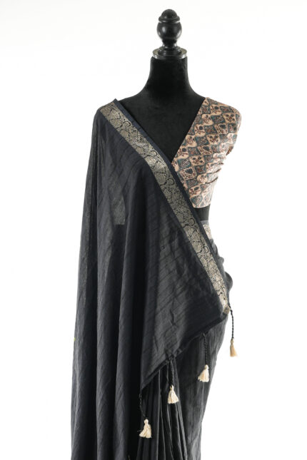 Black Printed Lace Border Saree