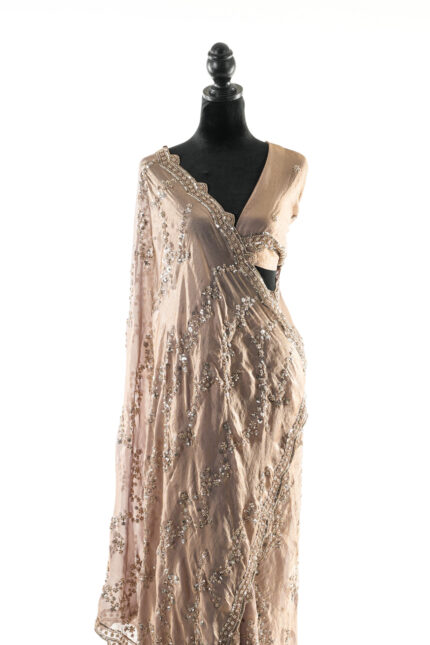 Nude Beige Saree with Sequin and Zari Embroidery Work