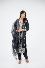 Exude quiet sophistication with Onyx Whisper, a black embroidered set crafted for those who appreciate refined artistry. The soft, flowing fabric complements intricate white embroidery placed with precision to accentuate the ensemble’s beauty. Each stitch reflects meticulous detailing, transforming simplicity into statement elegance. From festive functions to intimate celebrations, Onyx Whisper radiates timeless appeal and effortless luxury, making it a must-have for every modern woman’s collection.