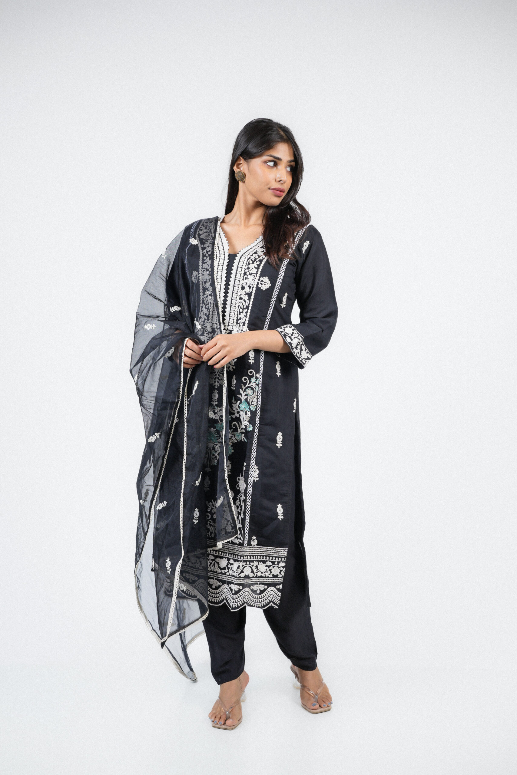 Home Salwars 3 piece sets Onyx Whisper Black Embroidered Set