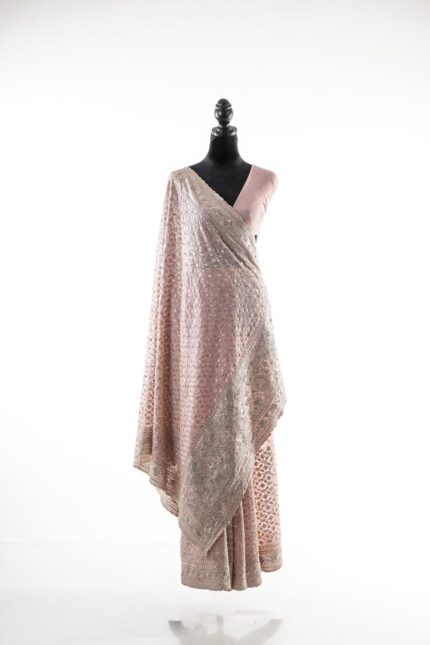 Nude Beige Saree with Sequin and Zari Embroidery Work