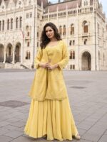 Be the first to review “Sunshine Yellow Embroidered Georgette Fusion Set” Cancel reply