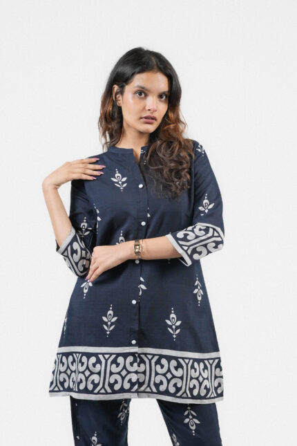 Midnight Blue Handblock Printed Soft Cotton Co-ord Set