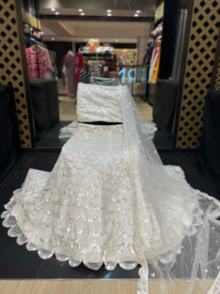 White With Sliver Embroidery Semi – Stitched Bridal Lehenga