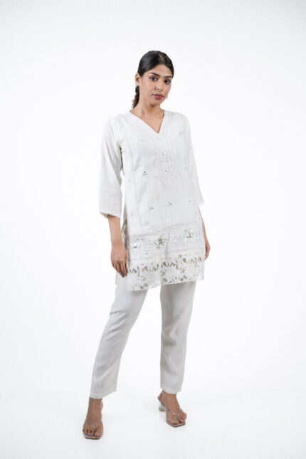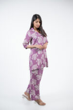 Add a soft touch of sophistication to your wardrobe with our Lilac Hand Block Printed Silk Co-ord Set. Made from smooth and lustrous silk, this elegant ensemble features a soothing lilac hue adorned with intricate white hand block prints. The collared kurta with a relaxed fit and button-down front pairs effortlessly with matching wide-leg pants, creating a perfect balance of comfort and contemporary style. Ideal for festive occasions, casual outings, or elegant get-togethers, this co-ord set captures the essence of effortless grace.