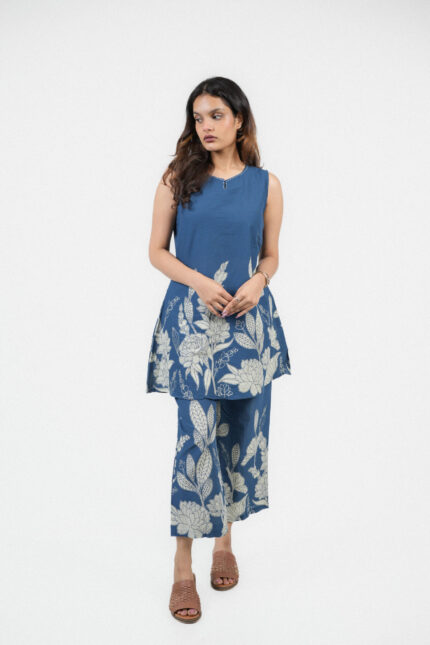 Slate Blue Soft Cotton Printed Floral Co-ord Set